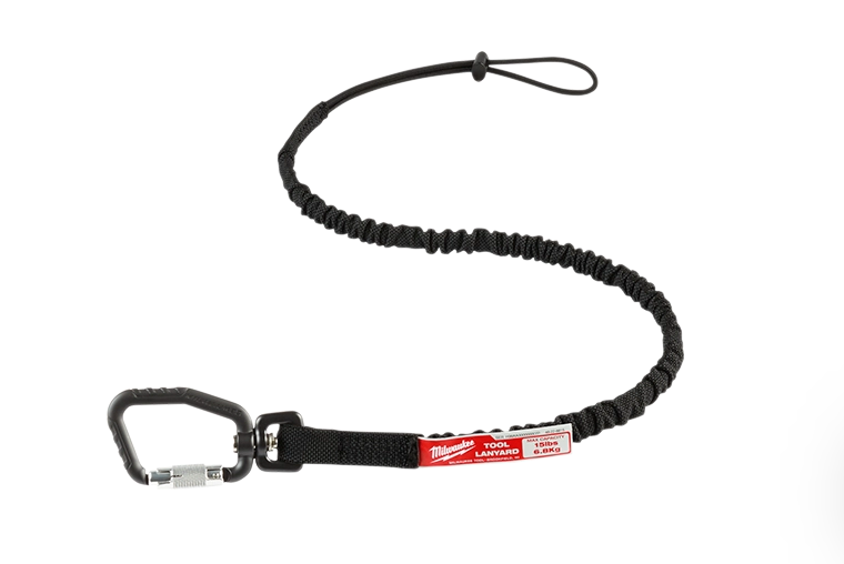 The MILWAUKEE® 15LB 54" Extended Reach Locking Tool Lanyard helps you stay productive with the industry's Best Shock Absorption while working at heights. The MILWAUKEE® lanyard is engineered to deliver the best shock absorption, slowing the tool gradually if a drop occurs to reduce the risks associated with dropped tools. The 54" lanyard has a 50% longer reach than a standard Milwaukee 36" locking tool lanyard, providing you with better accessibility while working overhead or farther from a tethering point. The Double-Locking carabiner requires two actions to open, ensuring you have a secure connection. The Milwaukee tool lanyard has an integrated swivel carabiner reduces twists when using tools and is ANSI/ISEA 121-2018 compliant. The black color-coded lanyard allows you to easily identify the lanyard's weight rating. The Milwaukee 54” Tool Lanyard is for use with tools up to fifteen pounds.